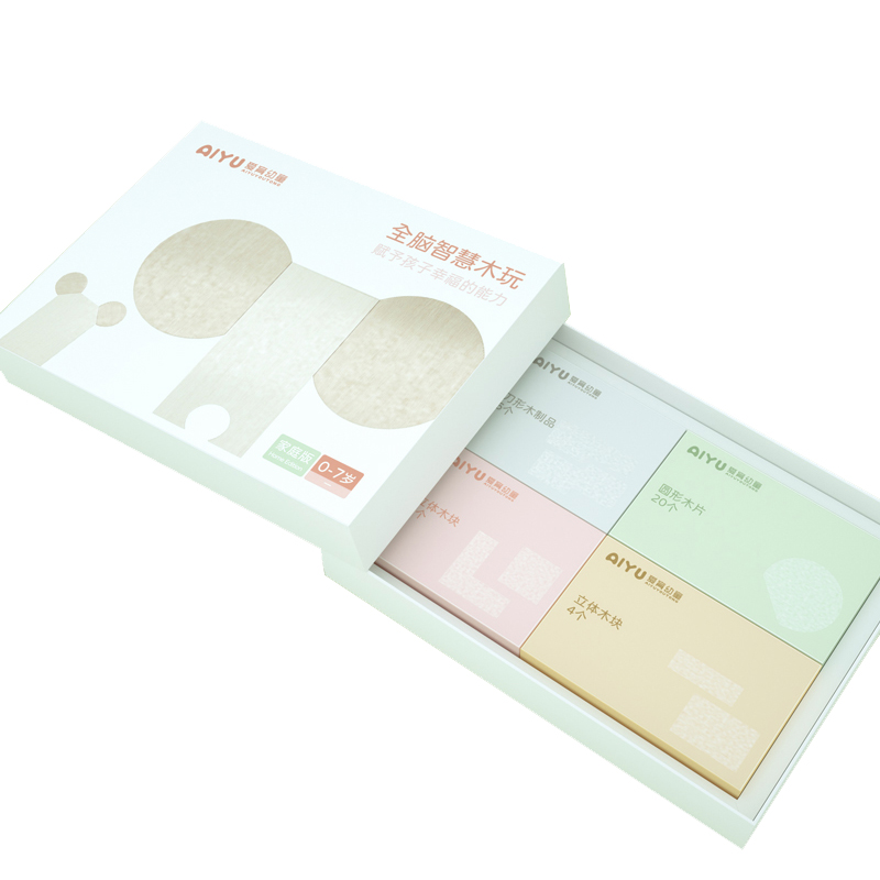 【家】全腦智慧木玩 內(nèi)含:刀形木制品1盒、圓形木片1盒、立體木塊2盒、操作卡1套、背景音樂(掃碼播放)